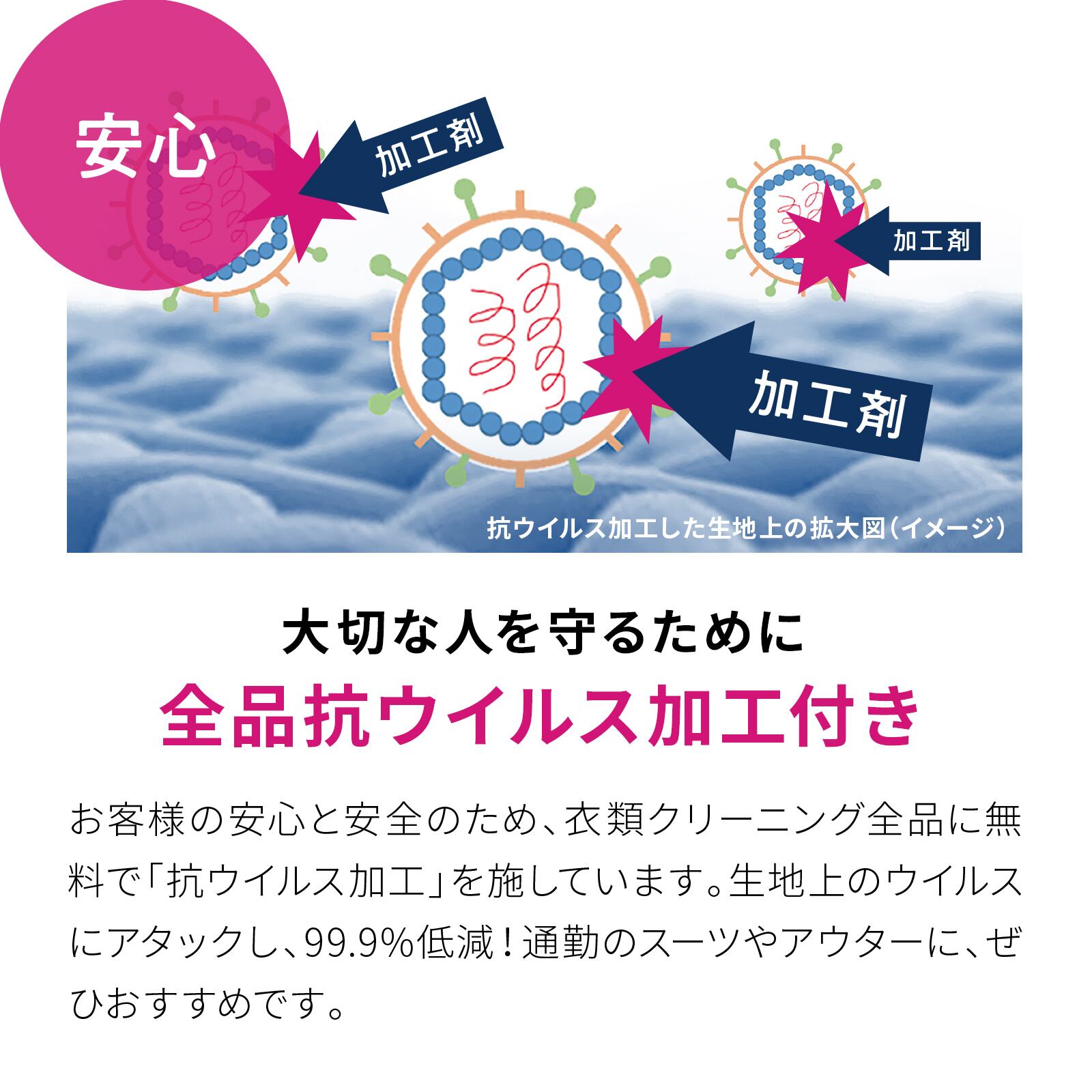 ・撥水加工について、加工できない衣類は通常クリーニングとなります。(オプション料金は料金相当額をクーポンにてお戻しさせていただきます。)