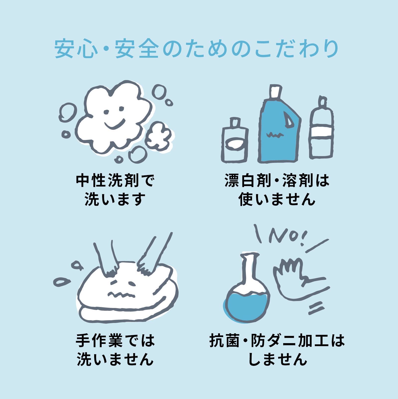 シミ抜きから丸洗いまで、全て中性洗剤を使用しています。アルカリ性洗剤は中綿の繊維を溶かしてしまい、ふとんを傷める原因となります。