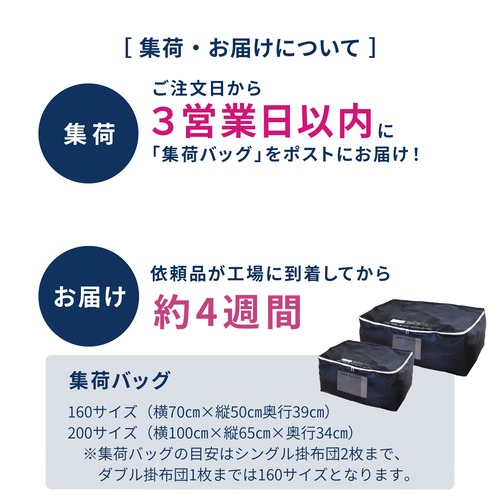 羊毛素材の寝具は、他の中綿に比べ縮みやすくなっています。ご了承ください。
